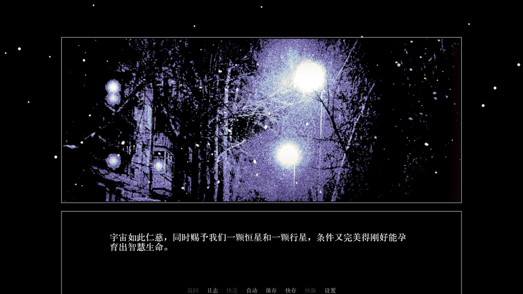 然後,她是個寫詩的蘇聯女孩,所以世界在她眼裏,是無垠的凍土,浩瀚沉默的星空,凝視大地的灰雲,還有啓示般的雪花……遊戲奇特的視覺效果,將所有的混凝土樓房都變成噪點,羣星融化,路燈化作夢境穿透街道與樹影。