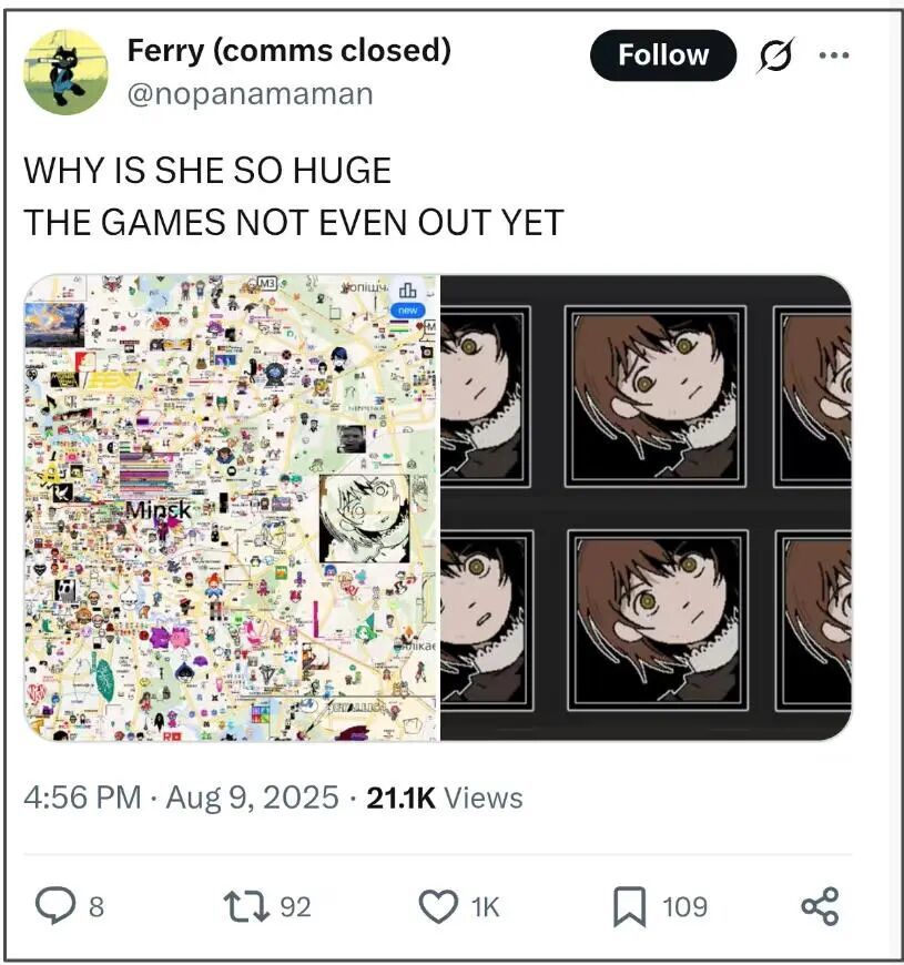 所有這些結合,威力就很強大,讓遊戲在還沒發售時,就靠demo有了名氣。當時作者還在推特上感嘆怎麼遊戲還沒上,女主的同人就滿天飛了。