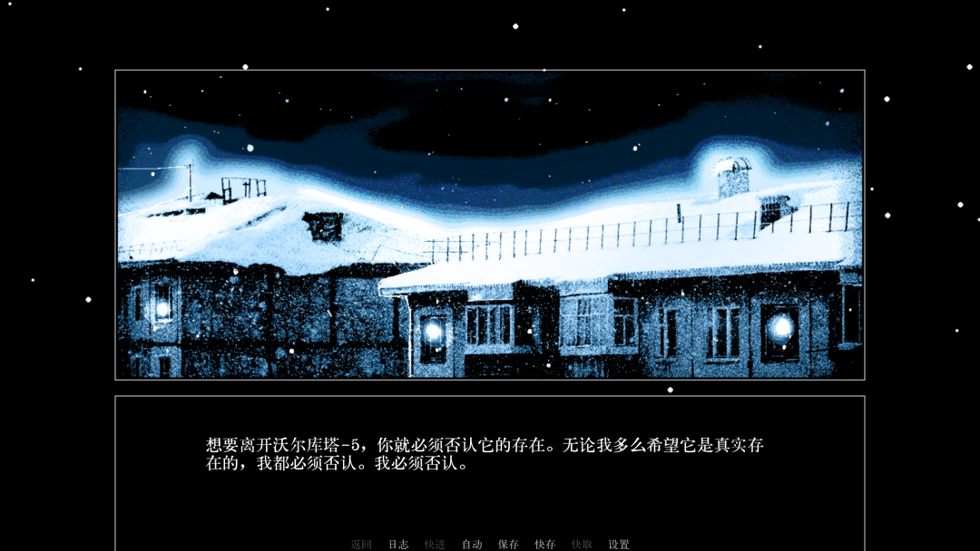 白光閃過,遊戲就這樣結束了。在尾聲,女主曾生活過的沃爾庫塔—5從世間消失,蘇聯隱瞞了真相,謊稱它的消失和極光爆發有關。而其他城市的孩子們,開始注意到一段從那片區域傳出的電波,斷斷續續,由三段同樣的摩斯密碼組成。這些電波彷彿永遠不會消散,總在某個特定的時間出現,就連孩童都能破解其內容: