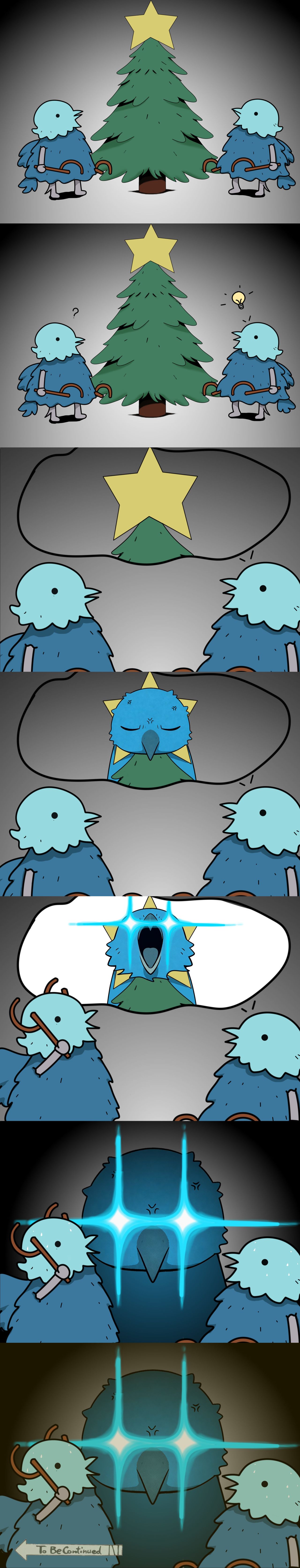咔咔們本想靠着它爲幽暗的尖塔深處帶來一點點聖誕的氣息,可無奈樹頂的星星完全發不出光亮,回應不了他們滿心的期待。