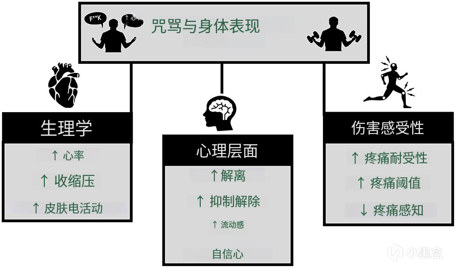 说脏话可以增加心流 、分散注意力、社会赞许性和幽默感,这与说脏话通过状态抑制解除来提升身体机能的理论相符。