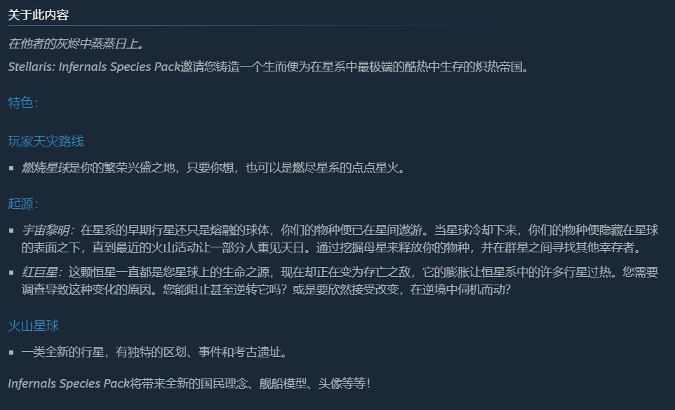 煉獄物種包相比以往的物種包進一步提升了標準,引入了新的星球類型以及星系熱症玩家危機路線。