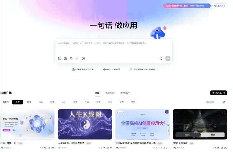 首先打開界面,咱可以按照需求,一句話重新生成一個3D 粒子聖誕樹。也可以直接複製,已經做好發佈的聖誕樹項目。