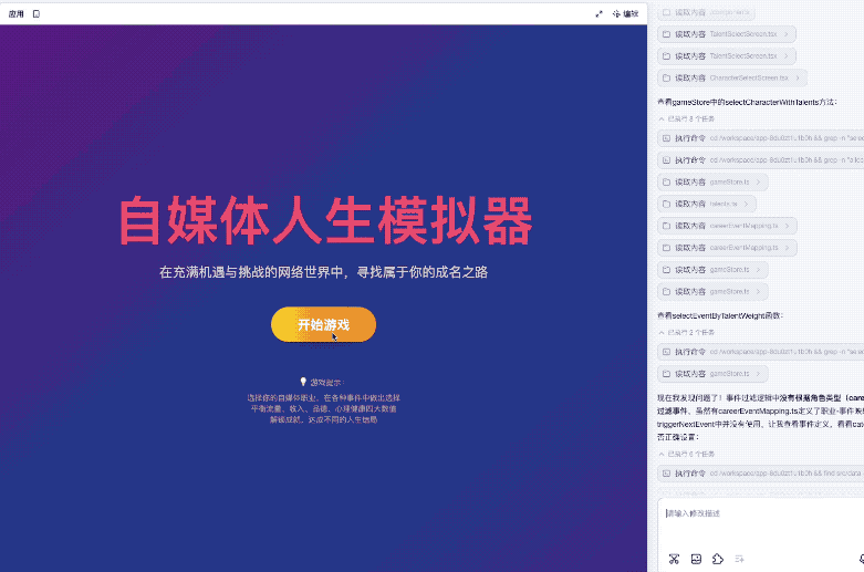再比如前段時間科研圈流行“青椒模擬器”。我也讓秒噠復刻了一個自媒體人生版本,集合12種網紅流派的自媒體人生,讓你體驗從整活博主到科創達人,或者從職場小編晉升的全過程。
