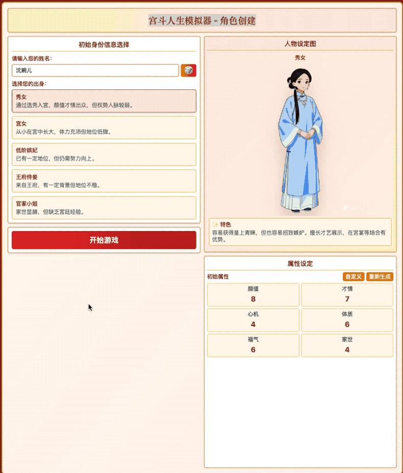 如果你覺得模擬器太簡單,那還可以直接上強度,搓個宮鬥遊戲。
