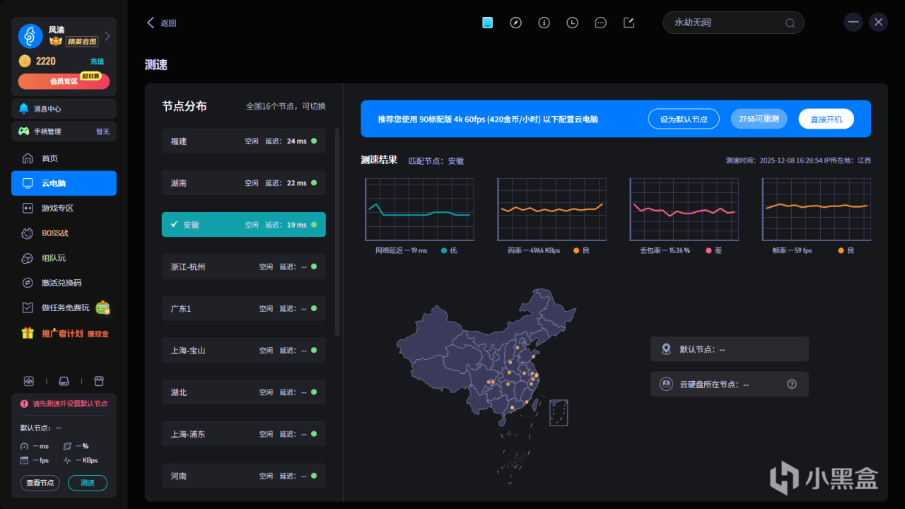 傳統雲遊戲最讓人詬病的就是高延遲,但海馬雲電腦因爲在很多省份都有布節點,所以網絡延遲甚至是最低只有幾毫秒,我讓幾個朋友在不同的城市測試了一下,基本都是不超過10ms的延遲。