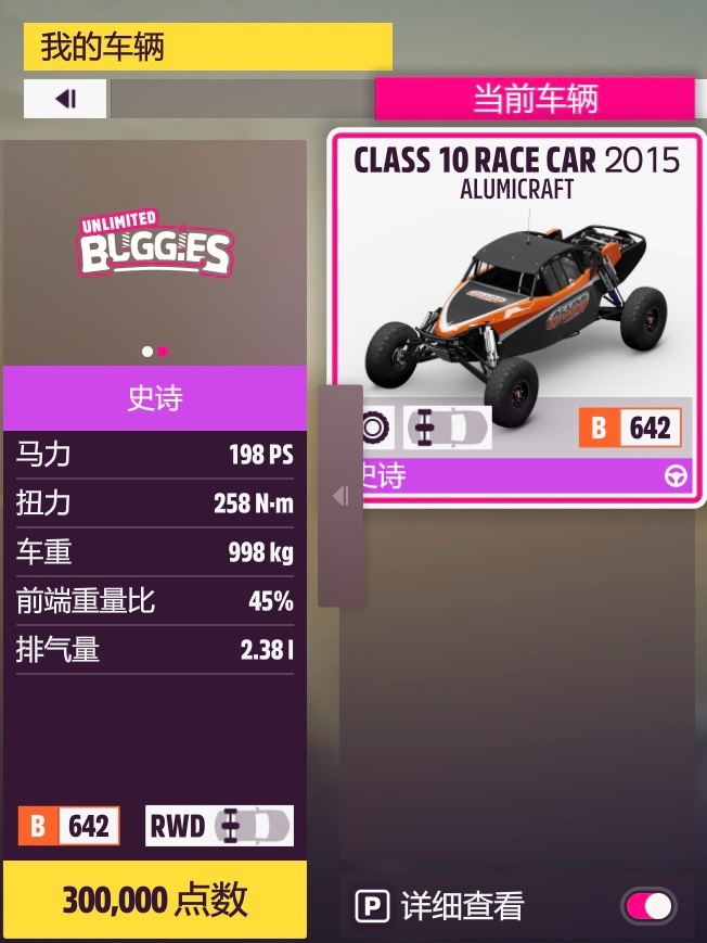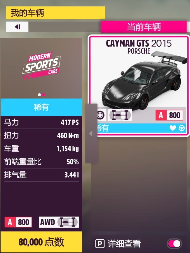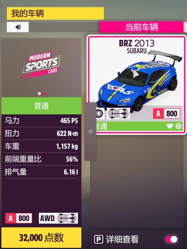 第二關贏得一場A級直線加速賽,其實原廠也可以的,但是原廠後驅起步略微困難+打不過中高難度人機,再加上S1的調校是801分、套兩個調校完全不會虧錢,所以就調了個800分的。和下面的S1級一樣,智能(zhàng)車手難度調到“老手”級或更低就可以穩定獲勝,自動檔手動檔差別不大。(其實“專家”就已經打得過了,以防萬一再低一檔;所向披靡靠這輛底子不算適合的挑戰者是沒法贏的,至少我試了將近一個小時各種奇怪改法都贏不了。)