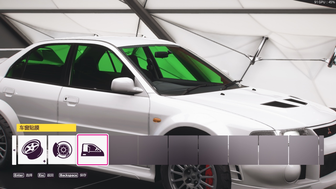 給任意車輛的車窗着色。車庫-設計與塗裝-塗裝車輛-車窗貼膜,更改成任意顏色即可。不是所有車都有車窗能改,選看起來有側窗的車。
