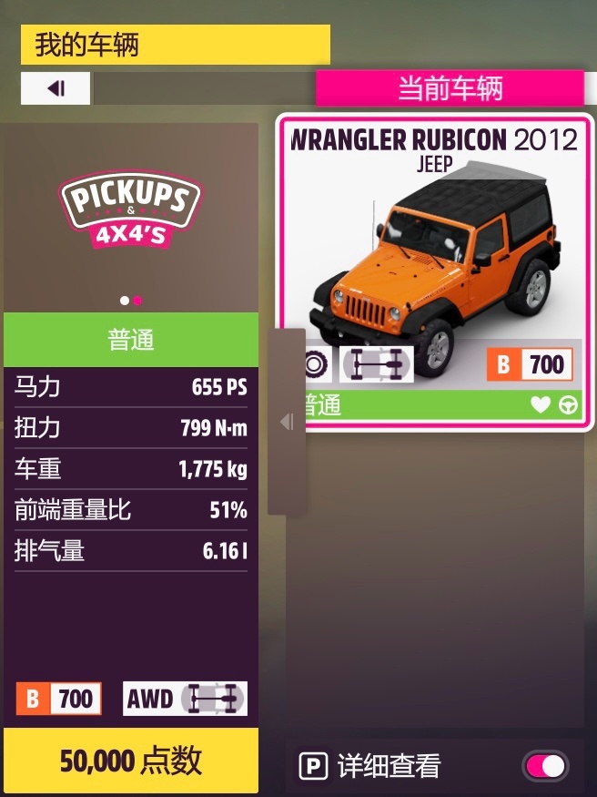 幾輛B級爛路的頂級強車都不在這個年代,剩下來有強度的基本就是大皮卡了。大部分比較強的車都測了一遍,皮卡中最快的是這輛吉普牧馬人,而這次的組別最速出乎意料地給到了五菱宏光。其實也不算太意外,三場都是雨地,第一場是操控圖,二三場也完全用不上後段,擁有相當不錯的前中段加速與寬體全空帶來的優秀操控的宏光專業對口。其實可能有些別的車用差不多的改法也能更快,但是一方面宏光是測試的最後一輛,正好比較適合這種改法,別的再去一輛一輛試完全沒時間了,而且還不一定真能快,一方面作爲非常經典的“國產神車”,成爲組別最速算大家喜聞樂見的了,硬去剝奪也不好。吉普牧馬人就更全面一點了,雖然極速也不算多高但是各方面都不錯,手感也很舒服,相比於別的皮卡不僅推重更強還更靈活,作爲平民車也是相當不錯的選擇,沒比宏光慢多少。其他各種皮卡就不多推薦了,想試的可以自己嘗試;牧馬人是上了傳動(變速&離合)的自動檔調校,手離找別的強度調校會更有優勢一點;至於比較明顯的整活車Unimog,我建議還是不要嘗試了,又慢又容易錯點,第一張圖一場下來少說比正常車慢15秒。