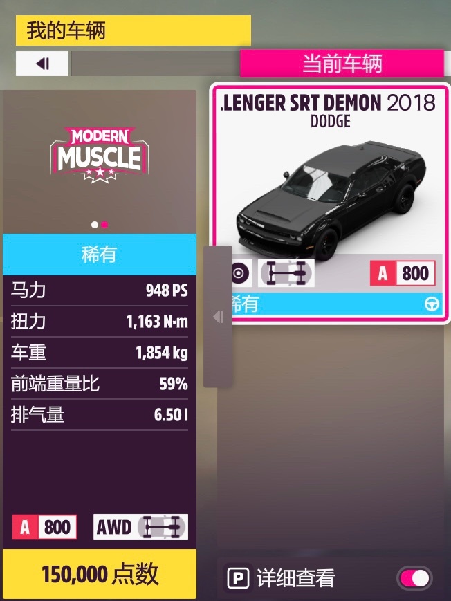 車輛限制:Dodge Challenger SRT Demon 2018