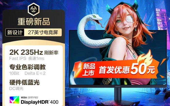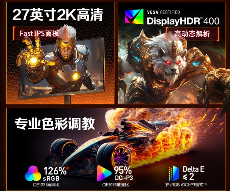 面板爲Fast IPS,27寸大小,2560*1440分辨率,400nit亮度,2K分辨率性能要求不高,近幾年的遊戲本都能玩,很適合做外接屏幕。