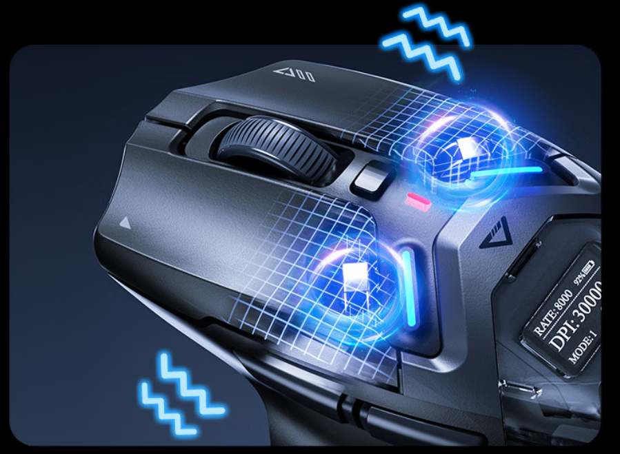 三馬達震動矩陣:這是真正的重頭戲。在FPS遊戲裏開槍、換彈,在動作遊戲裏揮砍、重擊,鼠標會通過不同強度和模式的震動給你即時反饋。