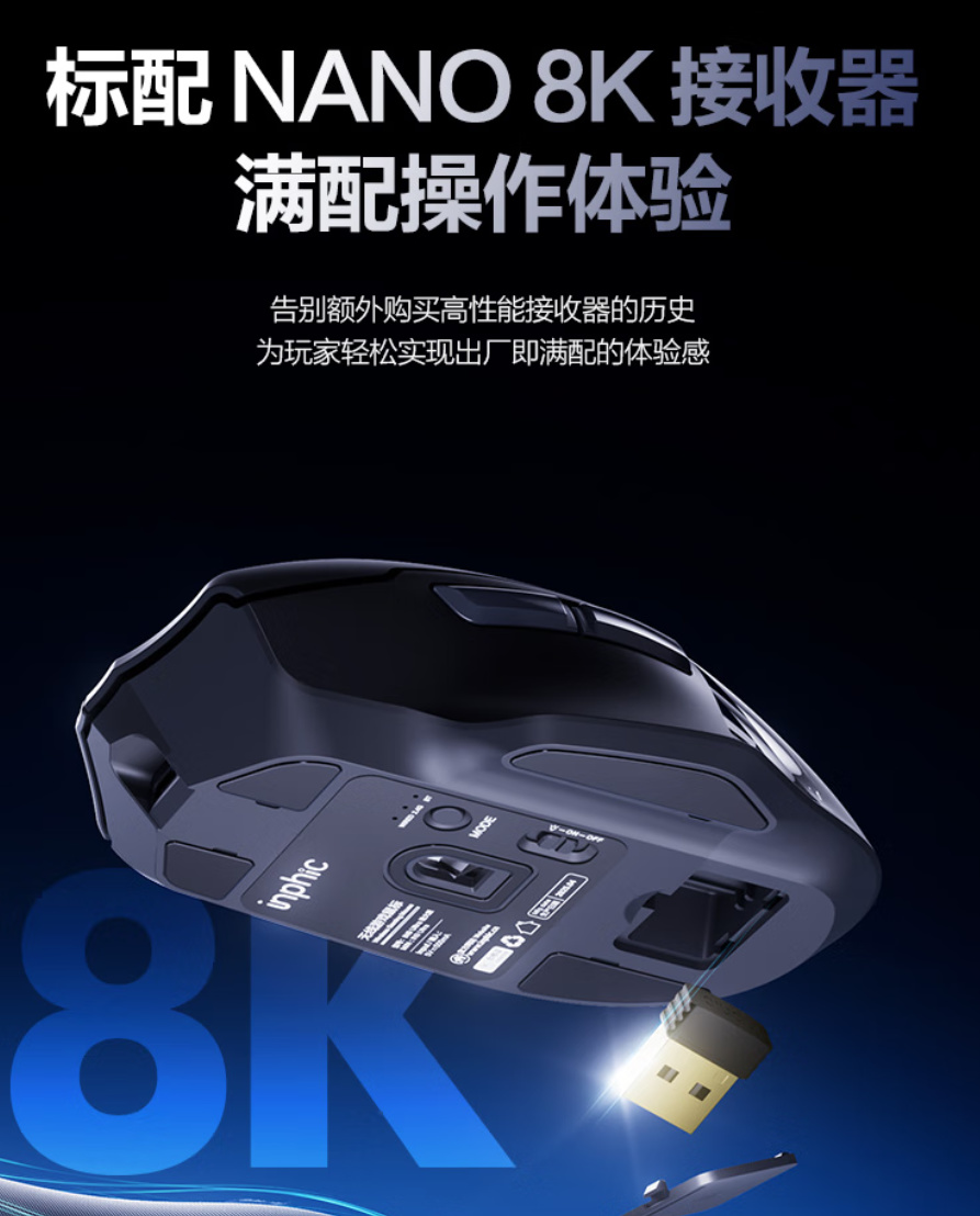 接收器:標配就是Nano 8K接收器,小巧方便,不用拖個大“U盤”了。