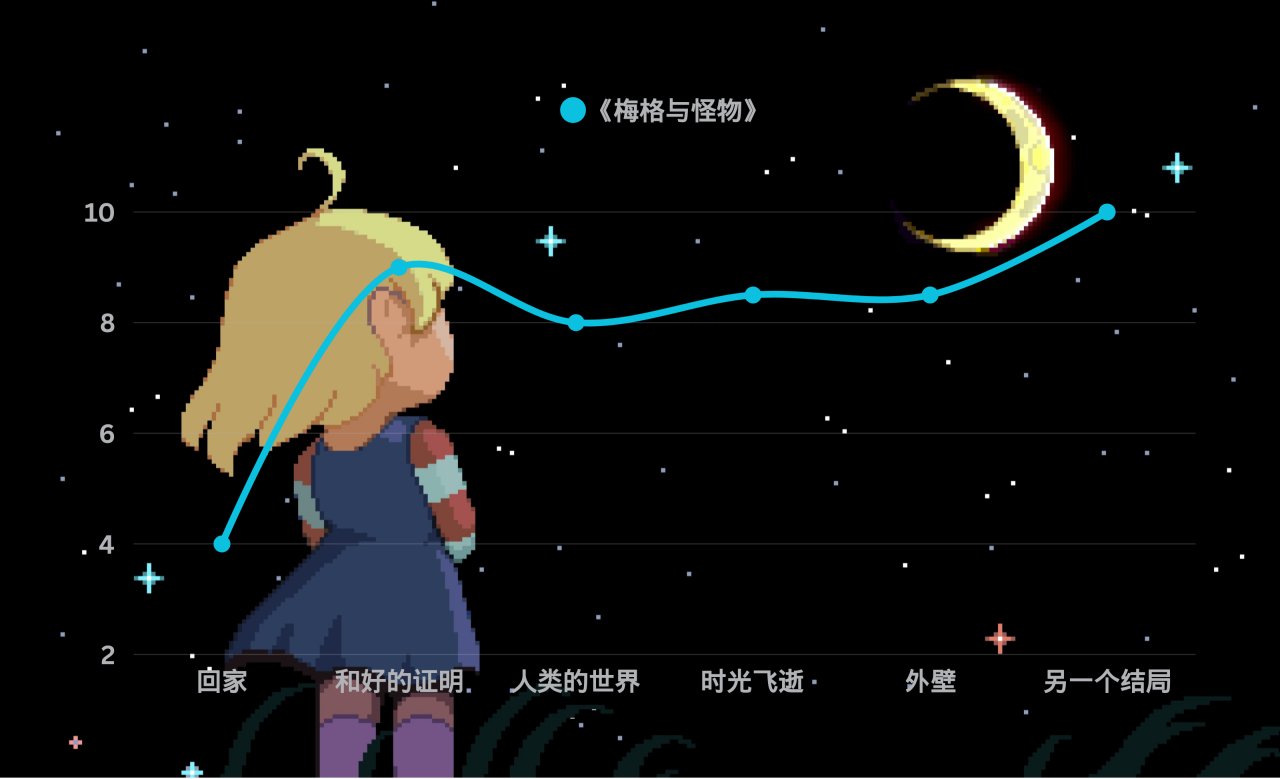 《去月球》系列几乎所有的作品,都是围绕着“情”这一主题展开,高瞰借助爱情、友情、亲情,描绘出了人类最为真实的渴望与脆弱。