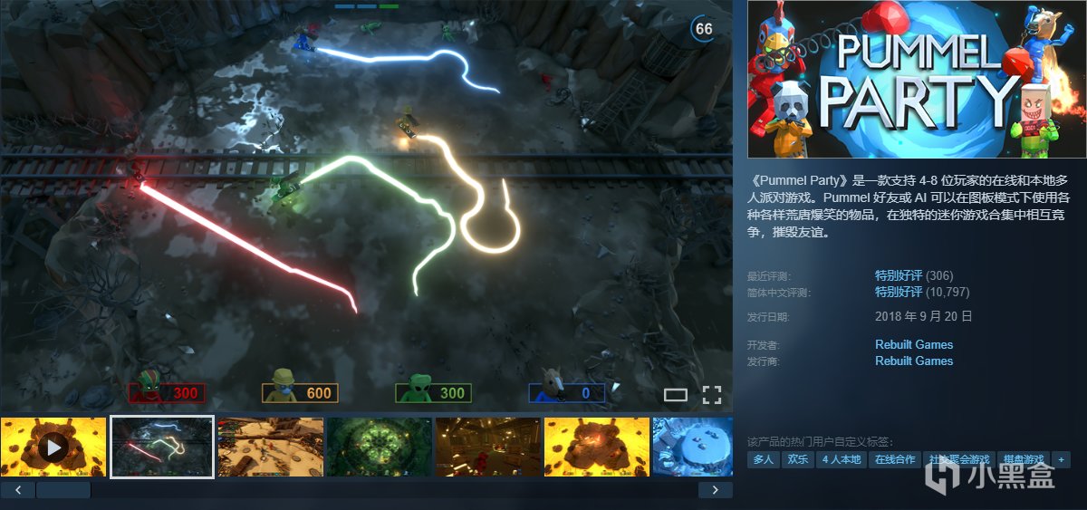 《Pummel Party》是一款支持 4-8 位玩家的在线和本地多人派对游戏。Pummel 好友或 AI 可以在图板模式下使用各种各样荒唐爆笑的物品,在独特的迷你游戏合集中相互竞争,摧毁友谊。