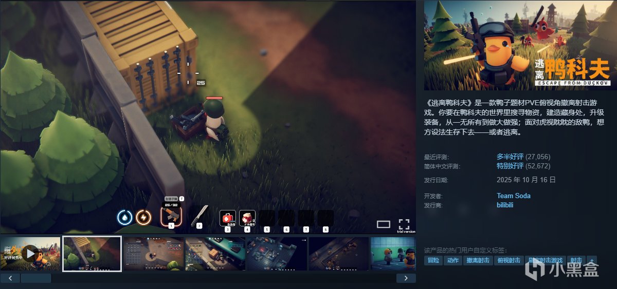 《逃离鸭科夫》是一款鸭子题材PVE俯视角撤离射击游戏。你要在鸭科夫的世界里搜寻物资,建造藏身处,升级装备,从一无所有到做大做强;面对虎视眈眈的敌鸭,想方设法生存下去——或者逃离。