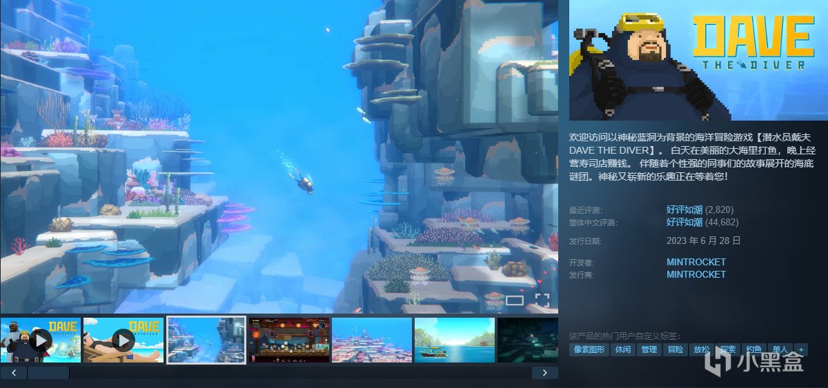欢迎访问以神秘蓝洞为背景的海洋冒险游戏【潜水员戴夫 DAVE THE DIVER】。 白天在美丽的大海里打鱼,晚上经营寿司店赚钱。 伴随着个性强的同事们的故事展开的海底谜团。神秘又崭新的乐趣正在等着您!