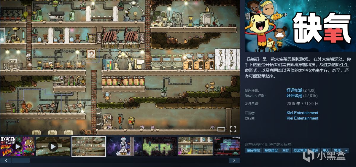 《缺氧》 是一款太空殖民模拟游戏。 在外太空岩深处,你手下的勤劳开拓者们需要熟练掌握科技,战胜新的陌生生命形式,以及利用难以置信的太空技术来生存。甚至,还有可能繁荣起来。
