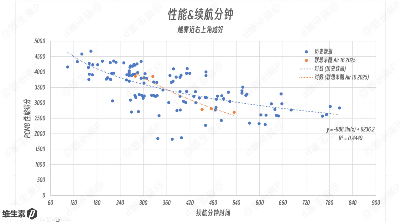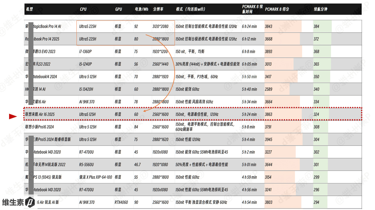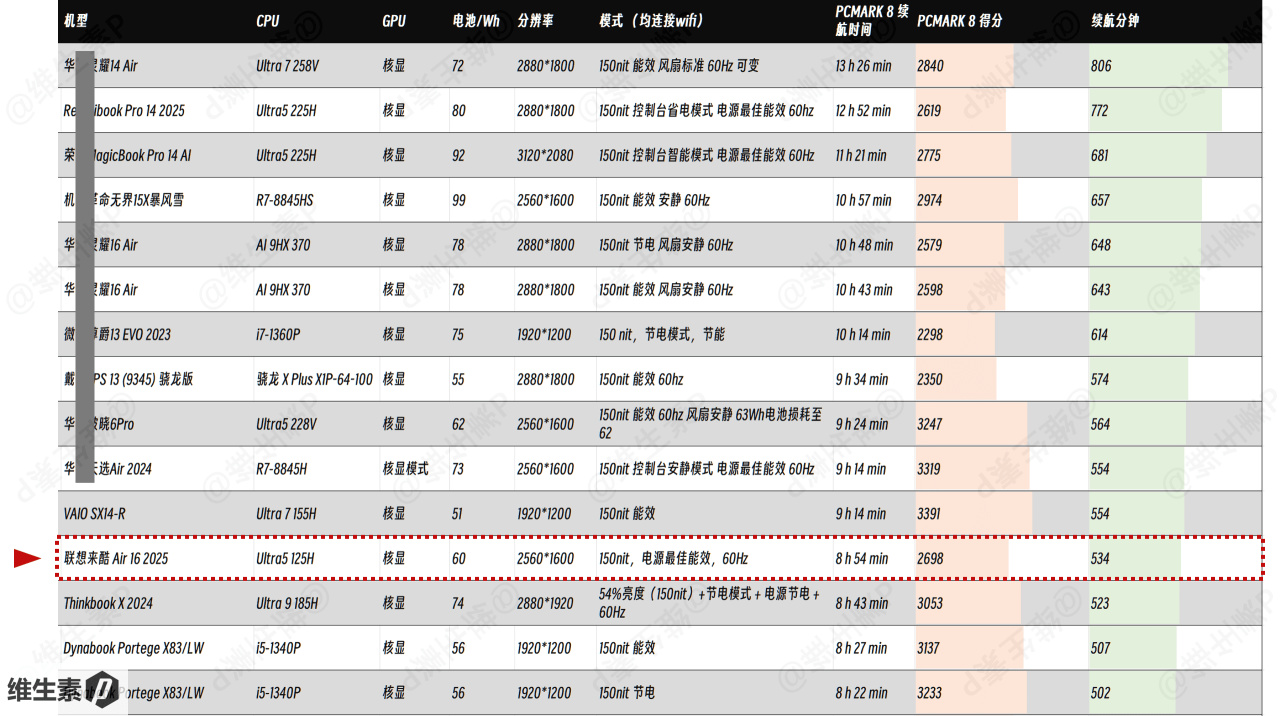 因为今年2025年酷睿Ultra2代的能效有比较好的提升,所以这个表现放在以往历史整体轻薄本的续航表现来说,也就是中规中矩。续航的增加,是用性能下降的代价换来的。