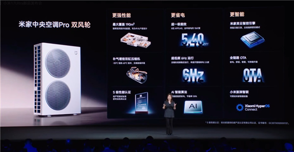 其中米家中央空调 Pro 双风轮是专为大户型准备的硬货,用了双风轮和补气增焓双缸压缩机,不仅制冷制热能力强,还特别设计了双出风模式,解决传统空调制热时头热脚冷的尴尬,售价 25999 起。