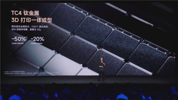 配件方面小米还给我们带来了一款全新的,使用了 3D 打印技术的钛金属表带,好处是仅有 43g 重,相比于不锈钢表带轻 50% ,比常规工艺的钛金属表带轻 20% 。