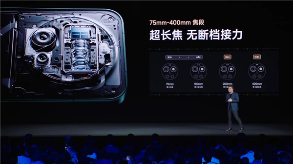 小米这次使用了一颗 2 亿像素的大底长焦,这颗长焦使用了 “ 对焦 + 变焦 ” 双浮动镜组,支持 70-100mm 范围内的连续光学变焦,还拿到了徕卡 APO 光学认证。