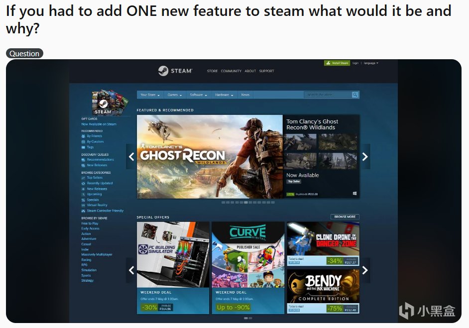 大家好,最近Reddit论坛社区出现这样一个话题,引起玩家热议。"如果你必须为Steam平台增加一项新功能,你会选择什么,为什么?”评论区涌现出了许多建议,这里截取部分。一起看看有哪些点子吧。