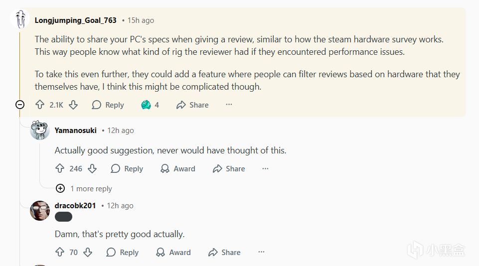 为了更进一步,他们可以添加一个功能,让用户可以根据自己拥有的硬件来筛选评论,但我认为这可能会比较复杂。