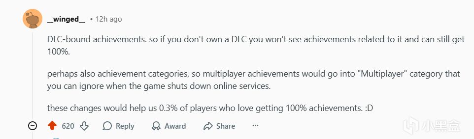 或许还可以设置成就类别,例如多人游戏成就可以归入“多人游戏”类别,这样在游戏关闭在线服务时就可以忽略这些成就。