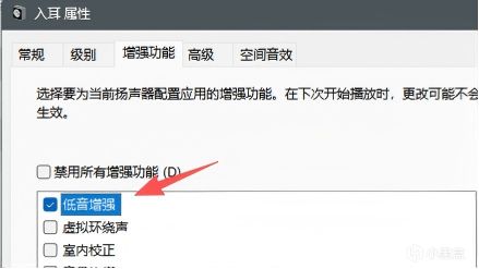然後找到自己的輸出設備,點擊右鍵,選擇“屬性”,然後選擇“增強功能”,勾選“低音增強”。這個功能可以放大遊戲中的靜步和小碎步等細微聲效,讓敵人的位置瞬間暴露無所遁形。