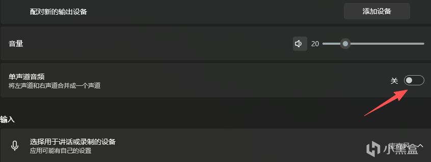 然後右鍵點擊小喇叭圖標,選擇“聲音設置”,點擊進入後查看是否開啓雙聲道。正常情況下這個選項是關閉狀態: