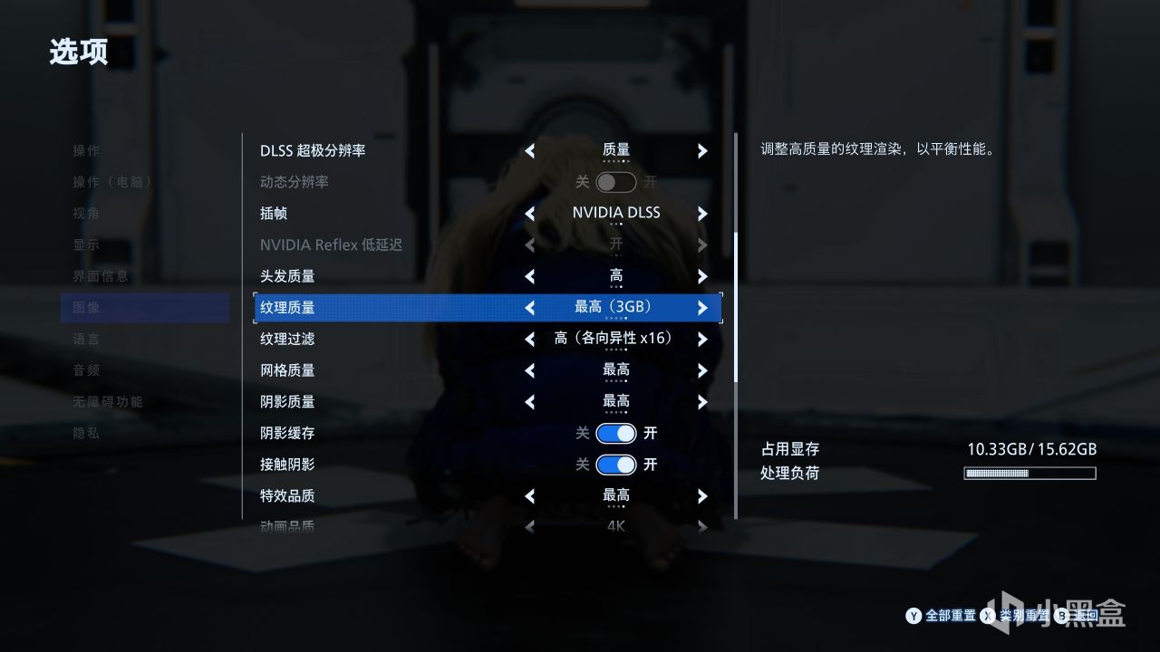 《识质存在》UI界面延续了生化4的简洁风格,预设画质分为最低、高性能、平衡和高质量四种(有明显的显存大小规划提示),不过手动拉才是最高画质,暂且没有隔行扫描技术可选,纹理质量最高只能设置到3GB,也许是卡普空优化了压缩技术,也许正式版会增添更大容量,4月份再判定吧。光线追踪方面支持间接照明和反射,比较符合月球基地这种场景发挥。