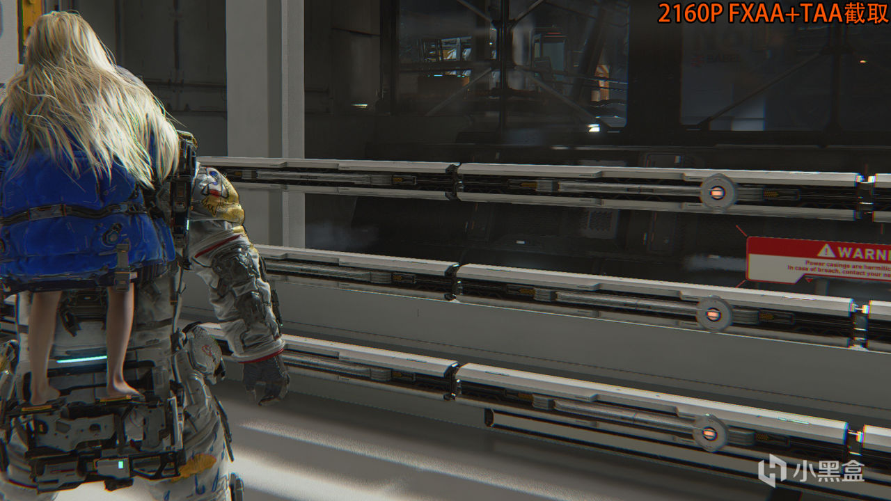 FXAA+TAA是游戏中的原生抗锯齿,在普通渲染模式下(可能还有一种是上面所说的隔行扫描渲染),整体画面锐利程度确实很高包括远景部分,尤其是戴安娜的头发一丝一丝可见,不过抗锯齿效果有一定瑕疵,可见不少物体的轮廓依然存在“狗牙”现象,且暗部噪点明显。DLSS画面看起来更舒适,整体锐利程度不如原生,可以期待一下正式版的DLSS 4支持。