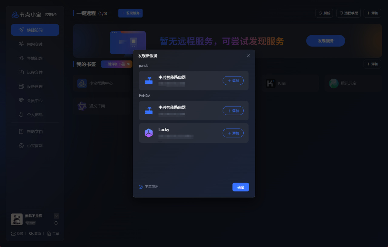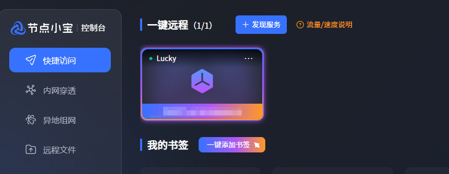 在win端以及手机端,也直接将添加的快捷服务直接展示到了首页,有点类似导航页的意思了,节点小宝这个操作等于帮助用户解决了记IP与记端口的问题,这点非常不错,很实用,不过希望后续能出一个内外网自动切换,就更完美了。
