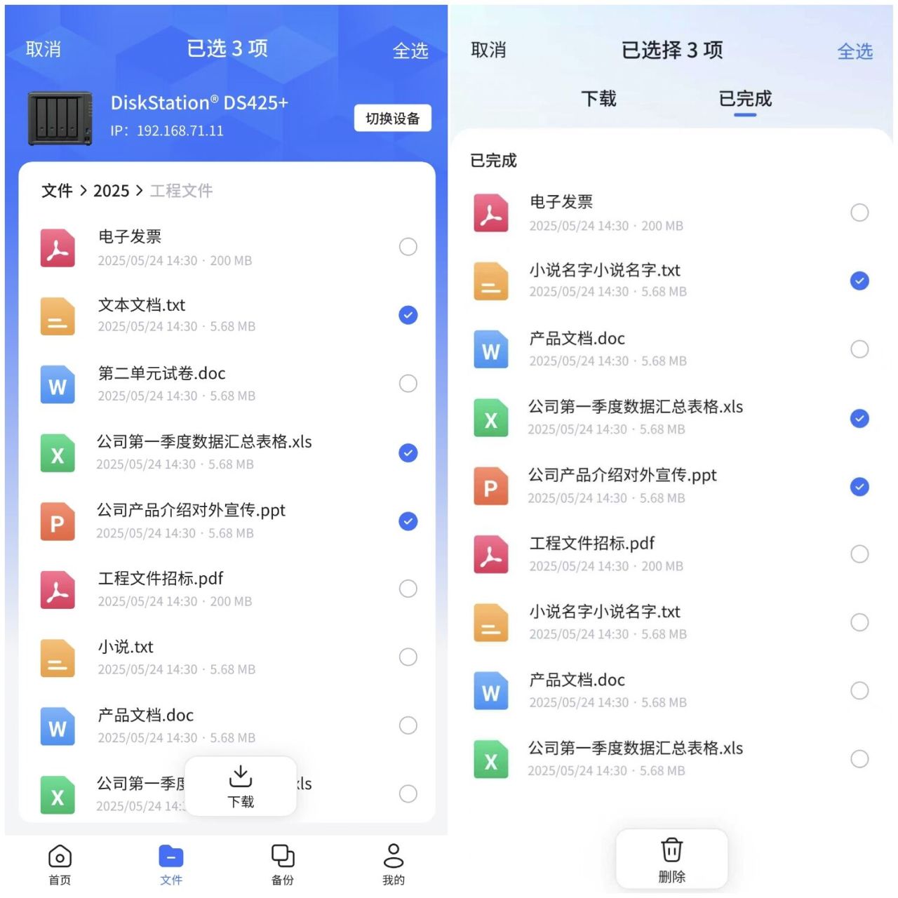 同时,手机端也一样支持NAS的远程文件管理,这对于群晖用户来说非常又好了,毕竟天下苦群晖APP久已,群晖自家的APP是真的难用,加上黑群晖无法使用QC,这下算是一次性补齐了。