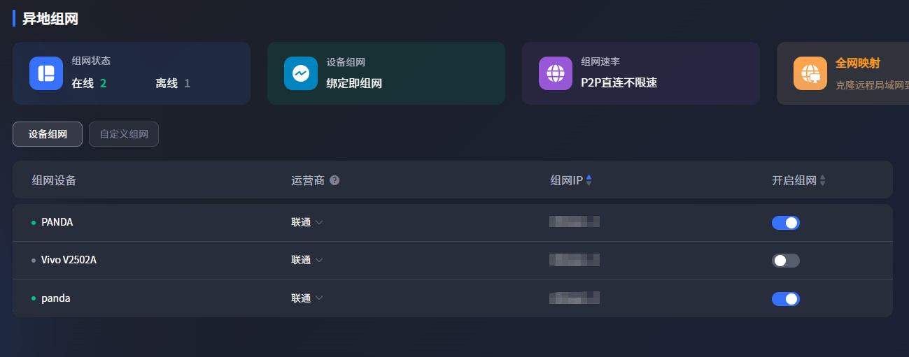 除了常规的穿透、远程服务,节点小宝也支持异地组网。异地组网除了能实现家中其他终端的远程访问,另一点其实也是对设备的统一管理,例如家中的电脑、NAS、路由器、软路由等等,统一界面下的管理对比多账号切换要方便很多。