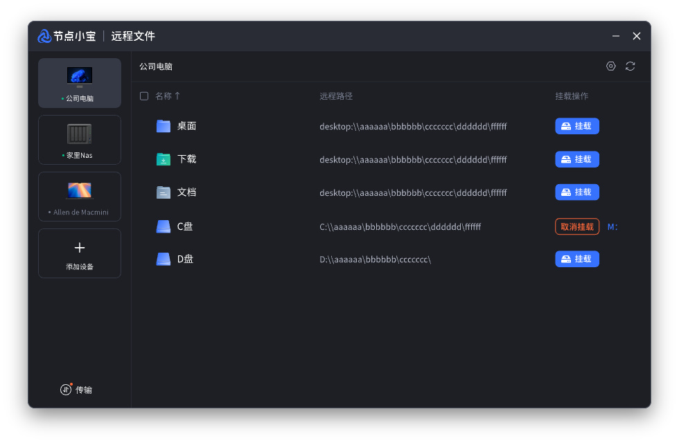 新的4.0在远程文件这块做了很多优化,在远程文件除了常规的WIn、Mac系统,也支持NAS的文件挂载,通过内置的文件浏览器可以实现类原生的文件传输与管理。