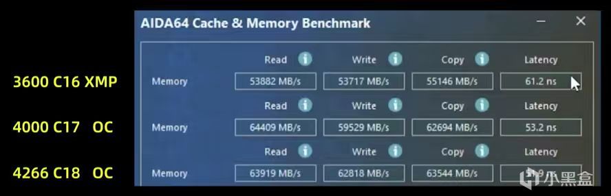 而对于手上没有Z板或者直接就不会手动超频的老哥来说,其默认的3600C16其实数据表现也还不错,虽然与极限性能有所差别,但受限于游戏本身的问题,如果只是打游戏的话,其实并不会有太明显的感知,除非你是AMD纯核显,那可能会更明显些,但XMP的数据依然比较亮眼,对新人来说完全够用了