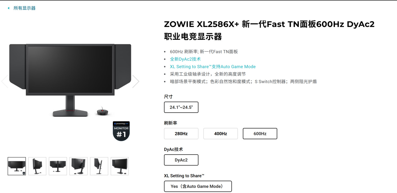要说极致电竞高刷,那绕不开的肯定还是卓威,大伙甚至能选到最高600Hz刷新率的XL2586X+型号(只要你有预算),这款建议搭配X3D处理器+RTX5070显卡。