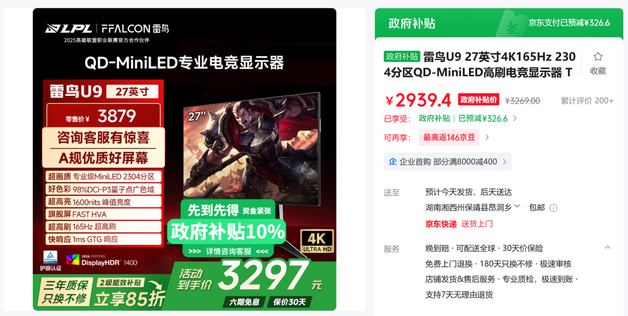 目前主打性价比高刷的品牌,5~600元价位基本都能给到260Hz左右的高刷了,甚至有些能给到300Hz。