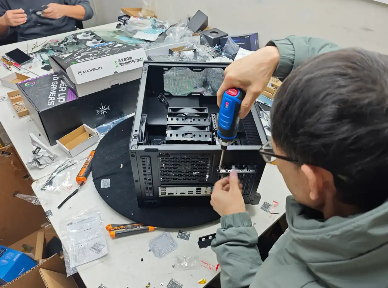 回归正题,大姐把机器配好后,交由装机小哥开始安装: