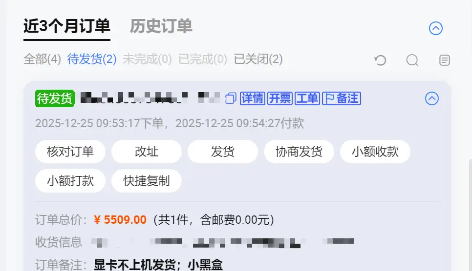 (如果是自提的话就跳过发货这步,客户可以直接抱走自己的新电脑了,有来自提过的老哥可以说说体验如何)