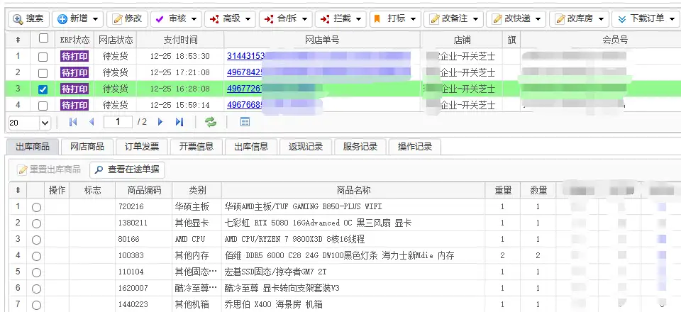 紧接着我们需要在ERP后台整理好订单,一一加好相关的配置做好出库清单: