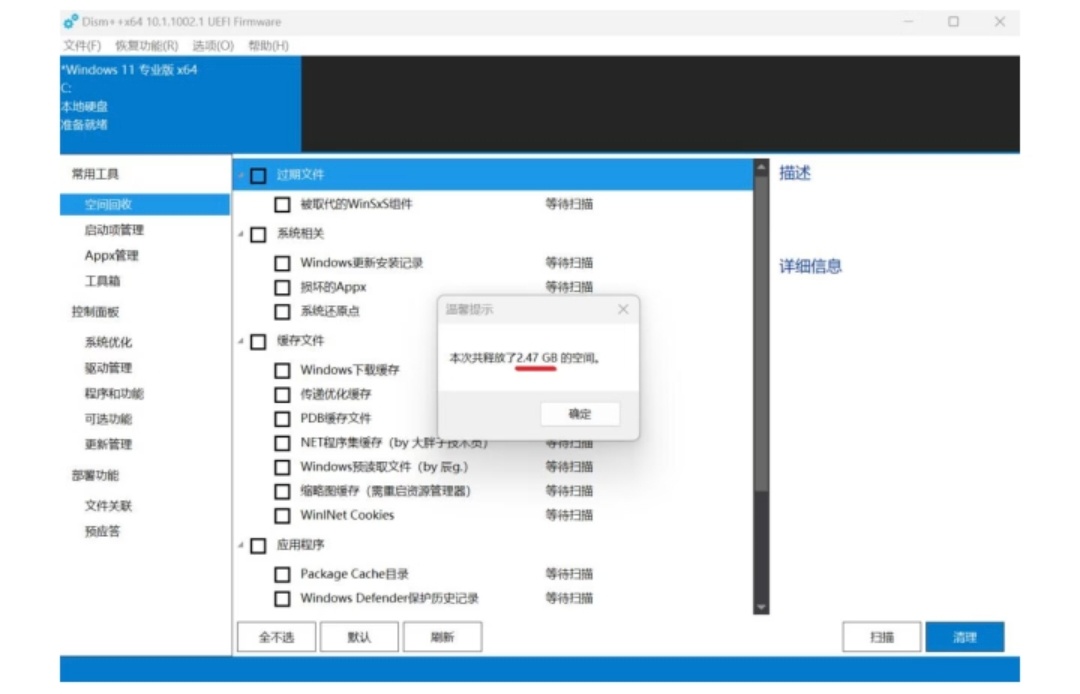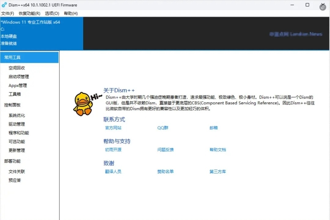 这款工具专为 Windows 系统量身打造,囊括一系列实用增强功能:不仅能实现远超常规工具的强力空间回收,还支持启动项管理、预装软件卸载、驱动程序管理,同时覆盖系统映像挂载、系统修复、系统更新管理等全场景需求。更有意思的是,它并非出自大厂之手,而是由几名大学生基于一款旧软件dism,自己琢磨、鼓捣出来的新应用。