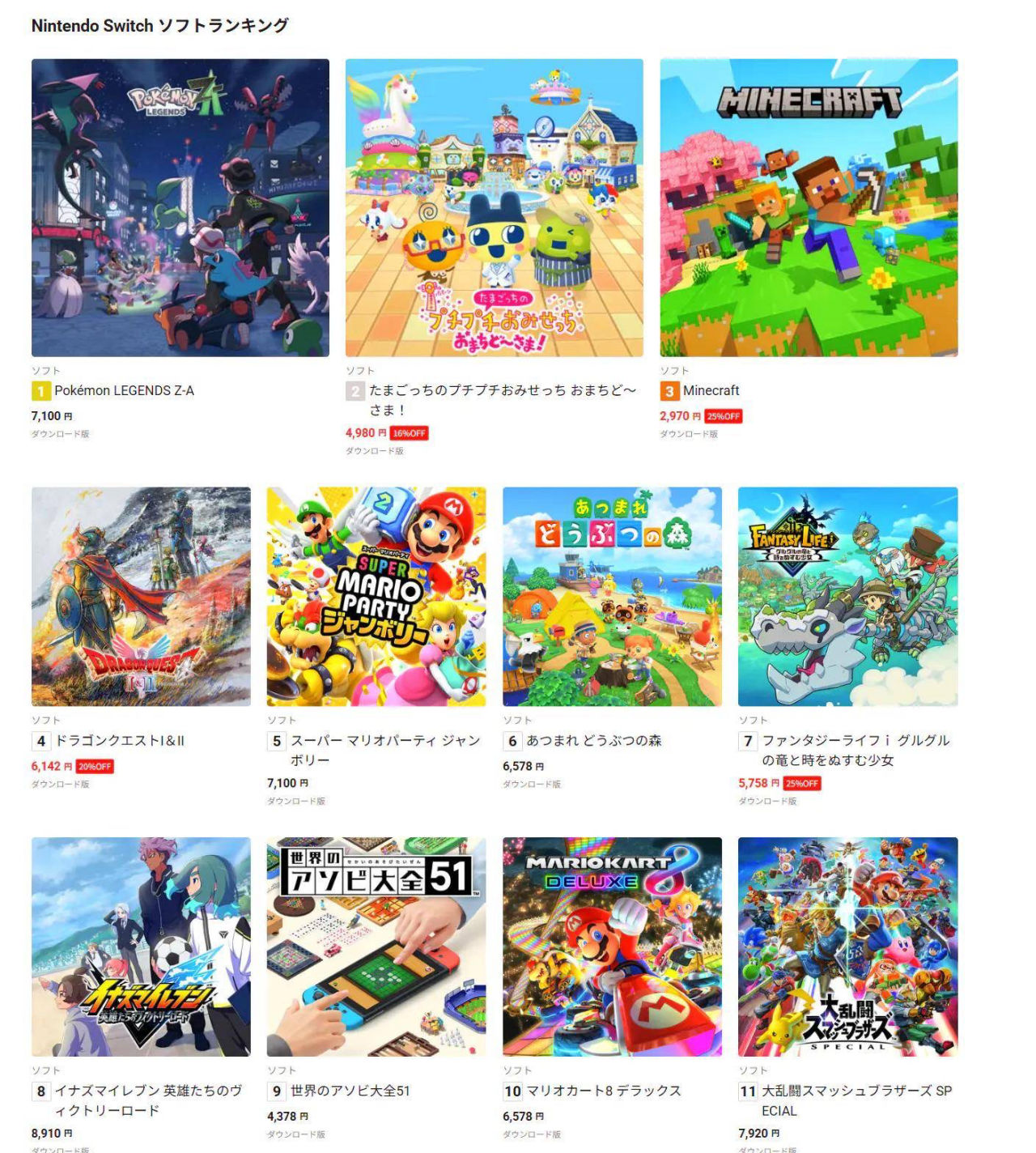 Switch遊戲下載榜: