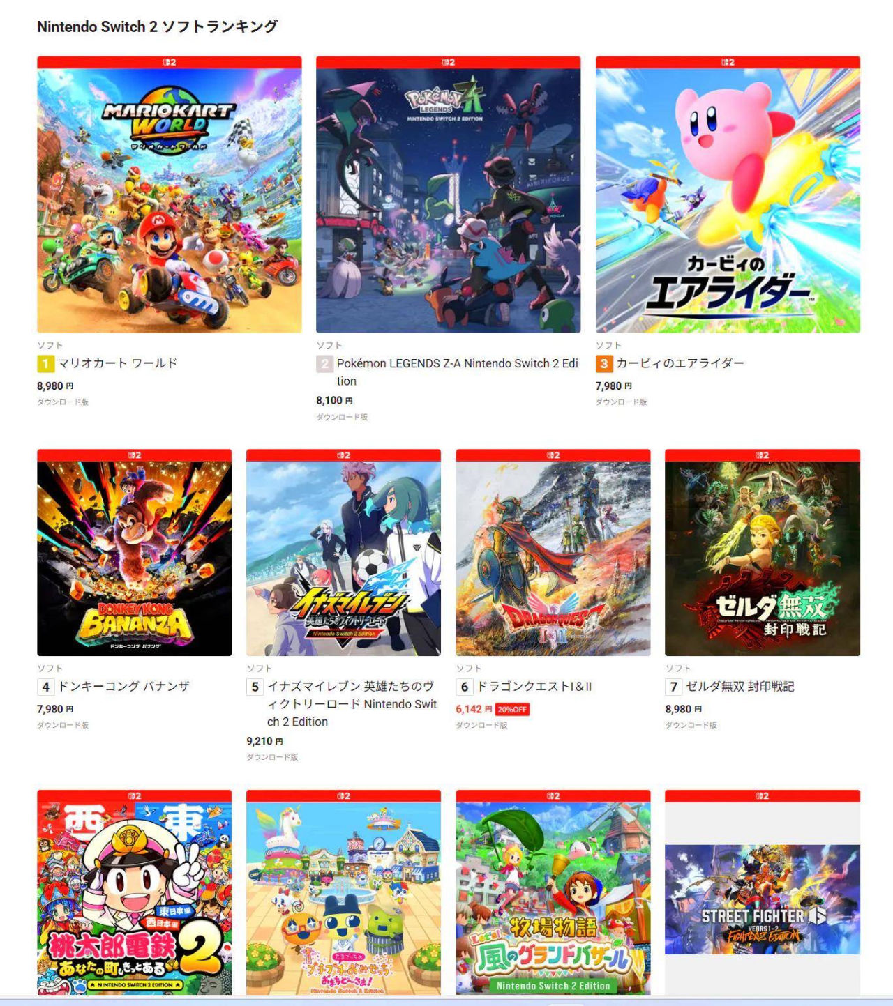 Switch 2遊戲下載榜: