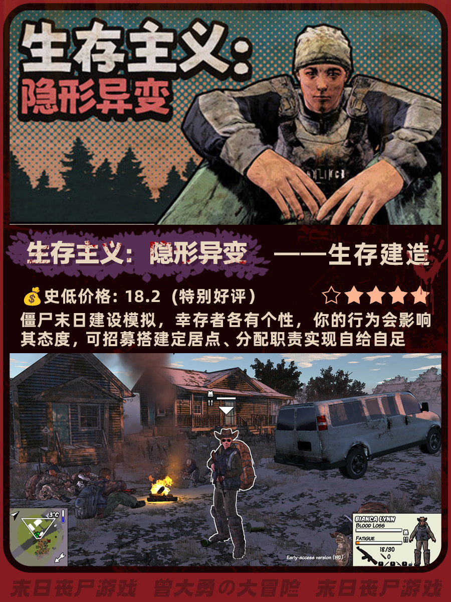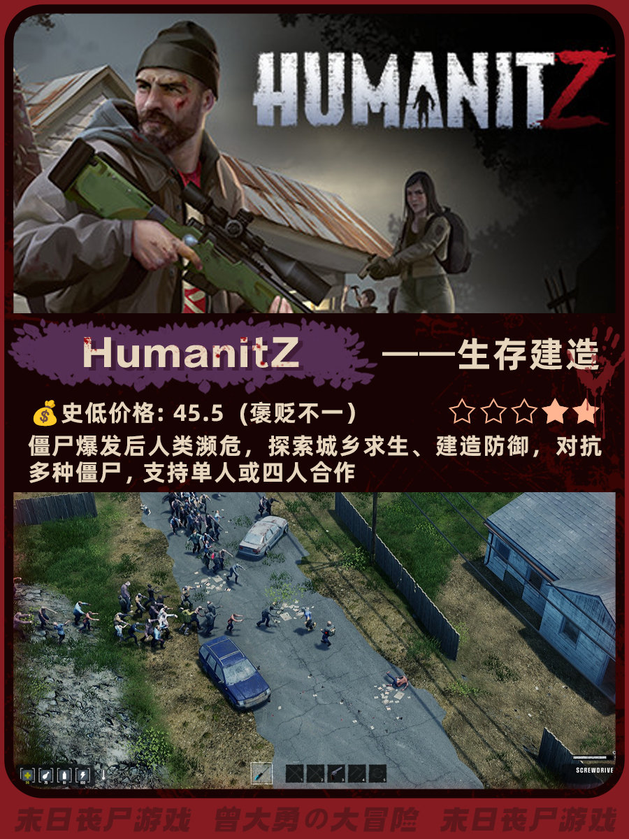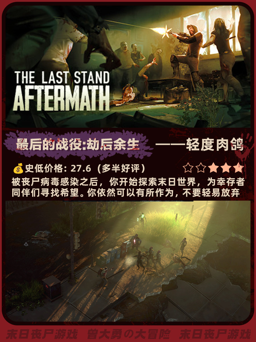 整理了一下相对小众的末日丧尸游戏。图里包含史低价格、玩家评分、游戏概述(星级是根据好评度给出)