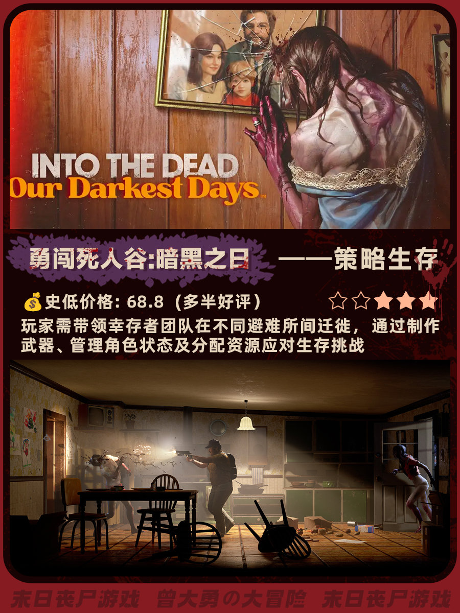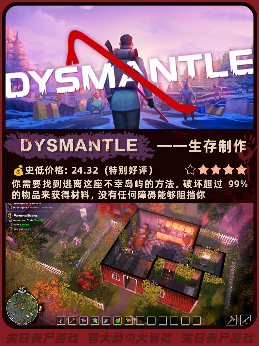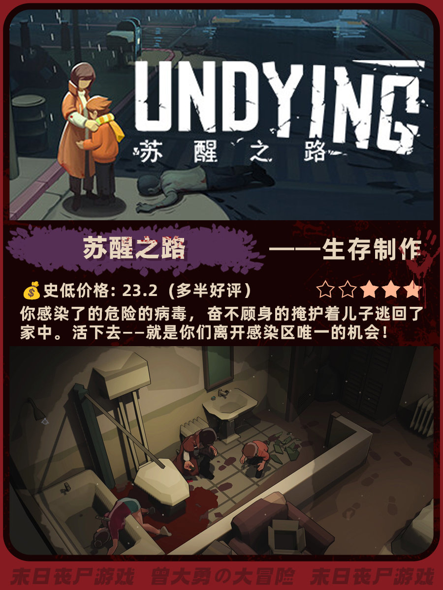 整理了一下相对小众的末日丧尸游戏。图里包含史低价格、玩家评分、游戏概述(星级是根据好评度给出)