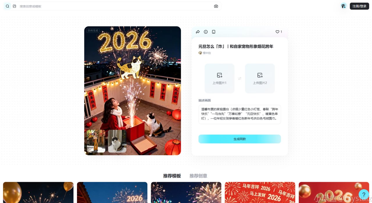 使用模板一鍵生成,無需複雜的提示詞,操作簡單,不管是日常娛樂還是商業宣傳,都非常給力。