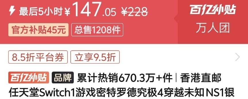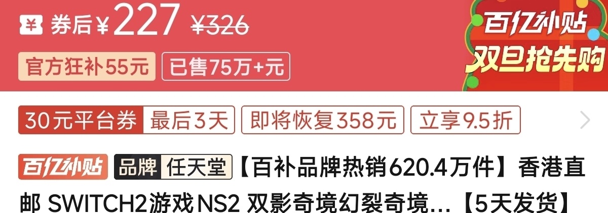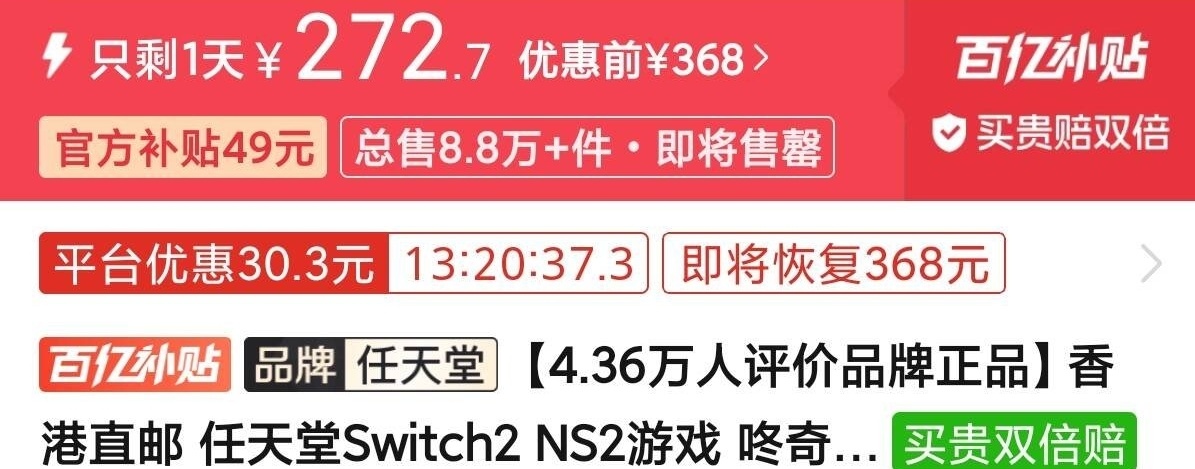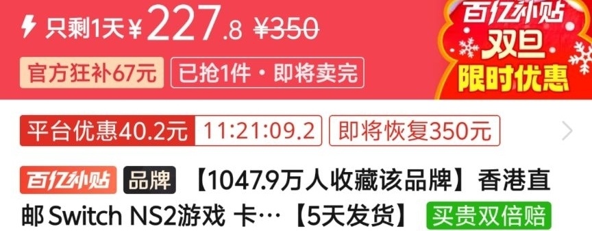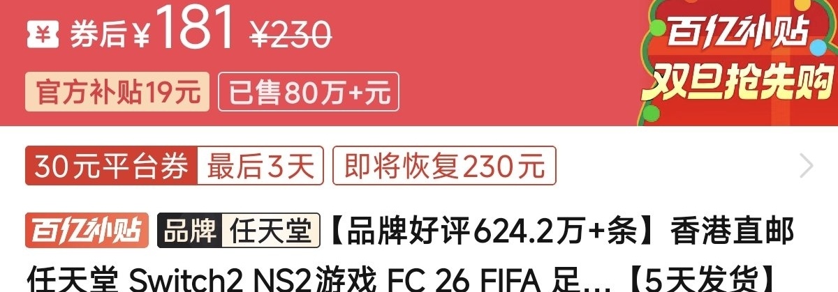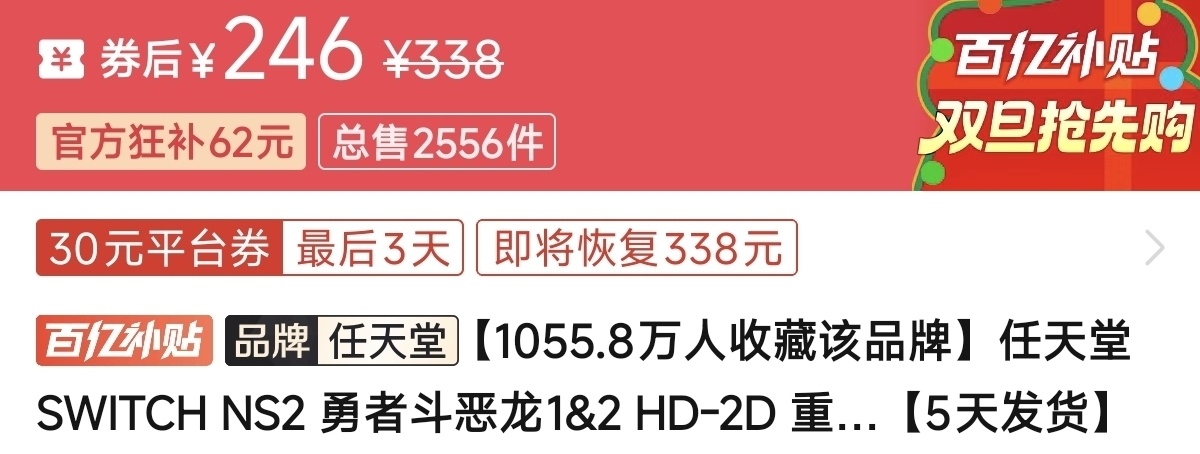 • 2代史低224元(消費券);一代可以領1700阿根廷金幣,2代沒有